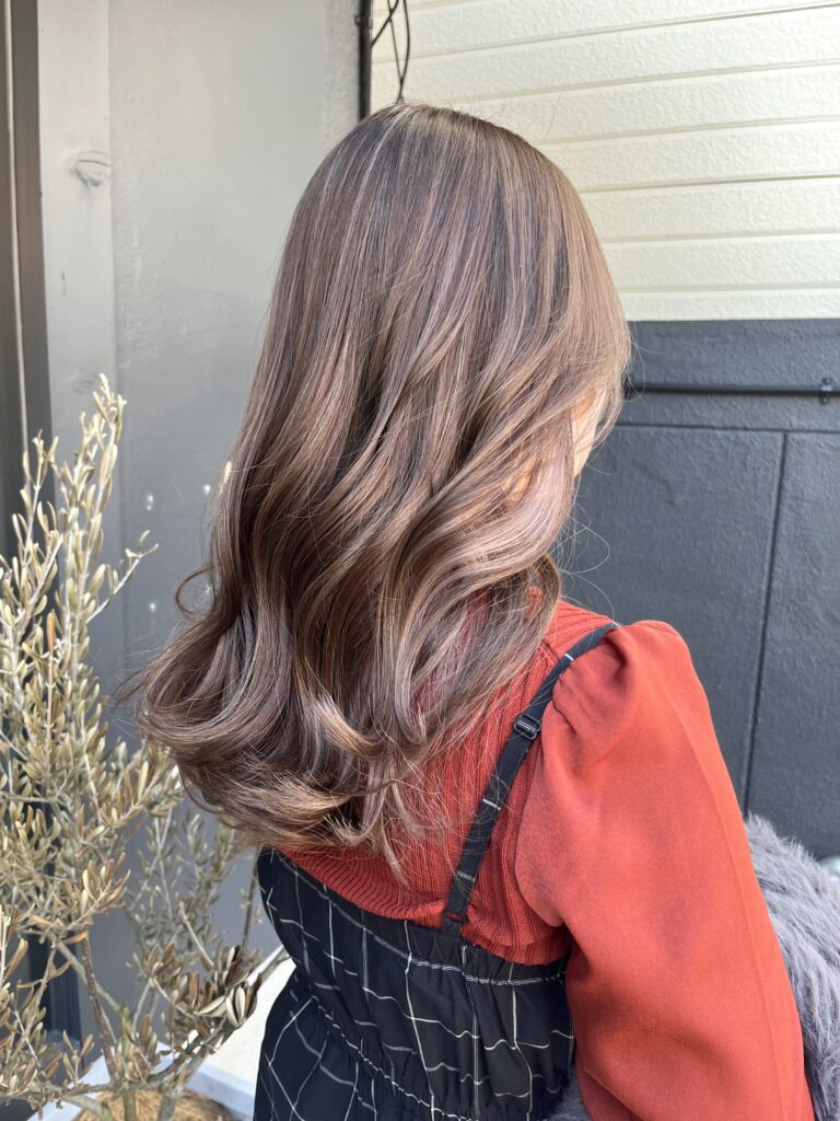 顔まわりやトップの分け目などにハイライトを入れると、白髪と馴染みやすく、伸びても目立ちにくくなるのが嬉しいポイントです。